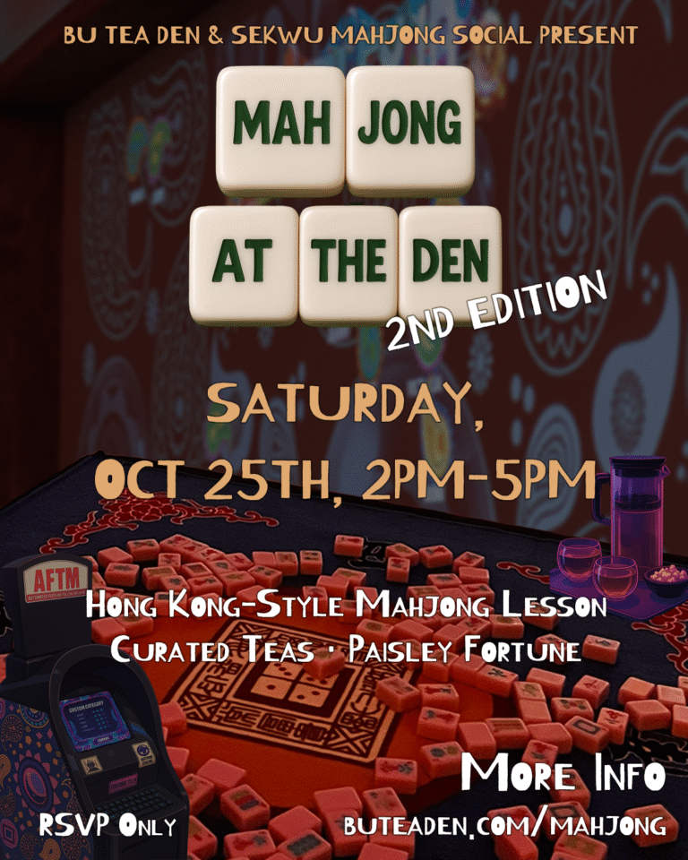 🀄 Step into the Den—our hidden speakeasy sanctuary—for an afternoon of Hong Kong–style Mahjong, poured teas, and Paisley fortunes on Saturday, October 25th.